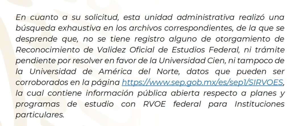 La Procuraduría de Derechos Humanos del Estado de Guanajuato (PDHEG) prestó sus instalaciones para hacer entrega de “doctorados” honoris causa otorgados por la Comunidad de Investigación y Emprendimiento del Norte (CIEN), una institución que no cuenta con Validez Oficial de Estudios de la Secretaría de Educación Pública (SEP). La ceremonia se llevó a cabo el pasado 16 de mayo dentro de las instalaciones de la PDHEG. En el “acto académico”, algunos empresarios, consultores y activistas recibieron sus “doctorados” por ser “guanajuatenses distinguidos por sus excelentes e invaluables aportaciones a los derechos humanos en el estado de Guanajuato”. De acuerdo con los estatutos de la Procuraduría, las instalaciones solo pueden ser prestadas para actos académicos o de promoción de derechos humanos. Sin embargo, la solicitud para el uso del aula realizada el pasado 2 de mayo por Norma Nolasco, presidenta del Grupo Unido de Madres Solteras, fue aprobada el día 6 de ese mismo mes por la coordinadora administrativa de la PDHEG, Verónica Gutiérrez Campos. Los acreedores al “título” La ceremonia fue organizada por la CIEN, con la finalidad de hacer entrega a ocho guanajuatenses el “título” de doctor honoris causa. Las instituciones que “avalaron” los grados fueron la Universidad CIEN y la Universidad de América del Norte, de las cuales no se tienen registros en la Dirección General de Acreditación, Incorporación y Revalidación de la SEP, de acuerdo con una consulta de información pública.